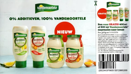 VANDEMOORTELE MAYONNAISE (Bon dans l'emballage - uniquement par le webshop)